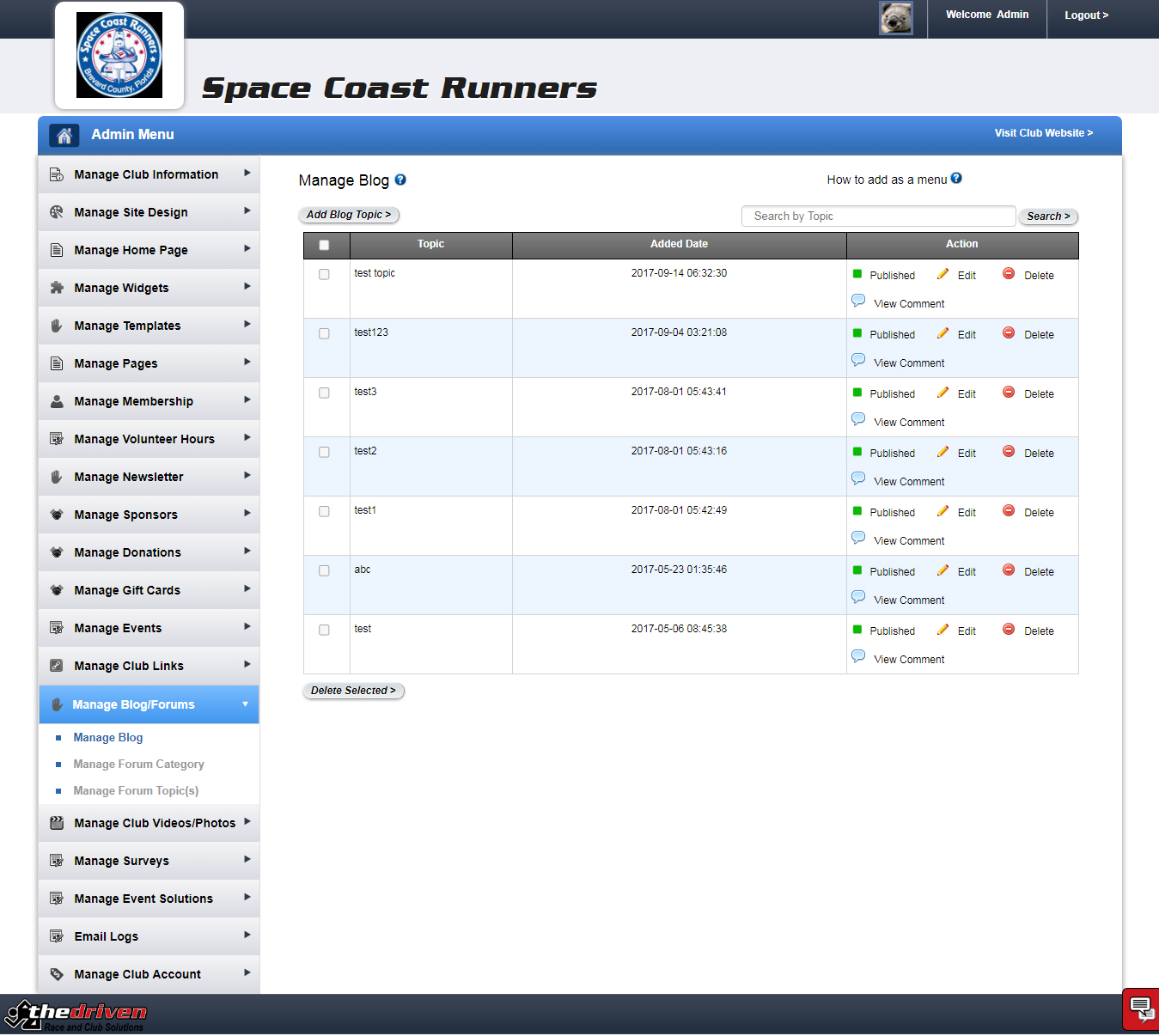 Keep club members engaged and informed with an integrated blog with the capability to add images.