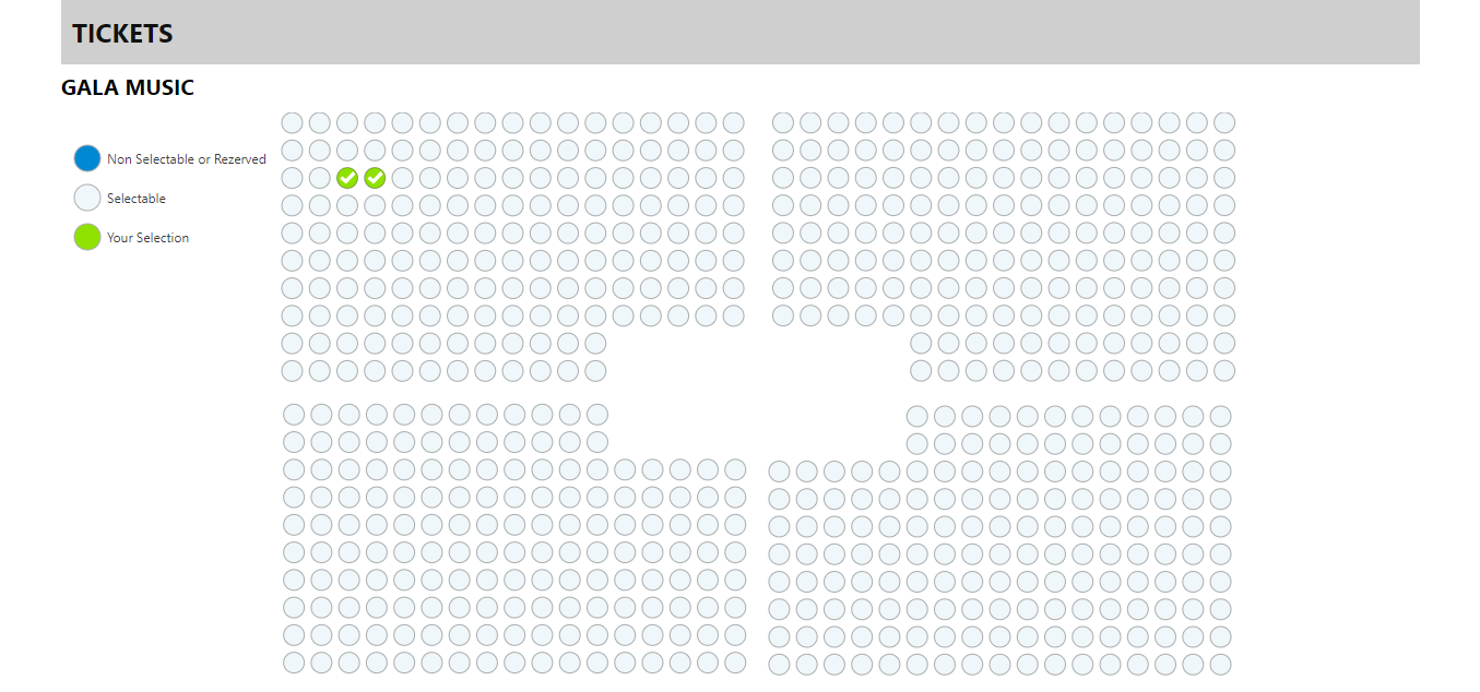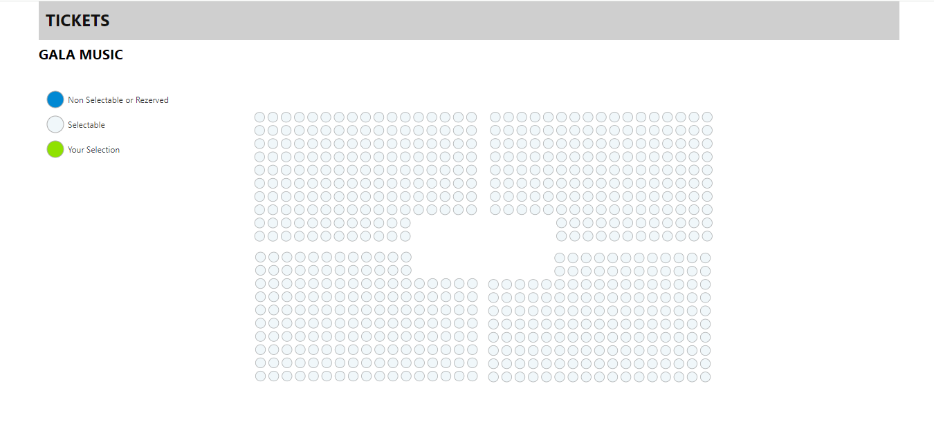 Provide your seating venue files with information like number of seats, open rows, etc and we will build the seat map for you.