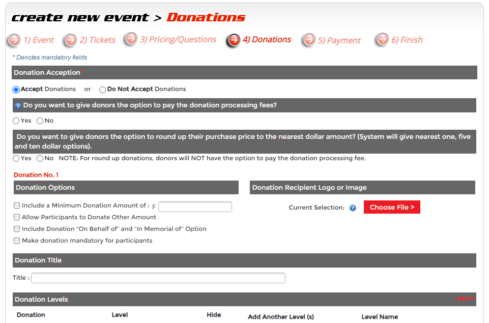 The customization of your event does not end with the event set up and ticket features. The Driven continues to flex its muscles and increases your revenue with our donation option. If you elect to accept donations, attendees can combine their donation with the ticket charges and donate "On behalf of", "In memorial of" someone or they can donate anonymously. In this feature, you can let your attendees know the cause they are supporting with their donations, and you can decide whether to have a donation minimum and set donation levels/descriptions.